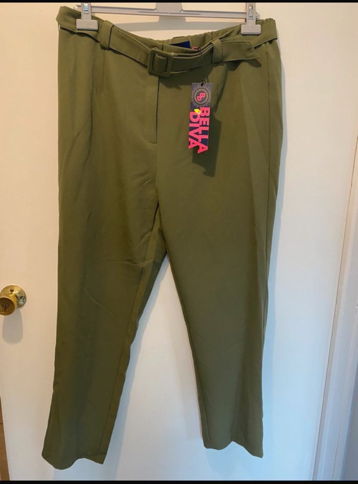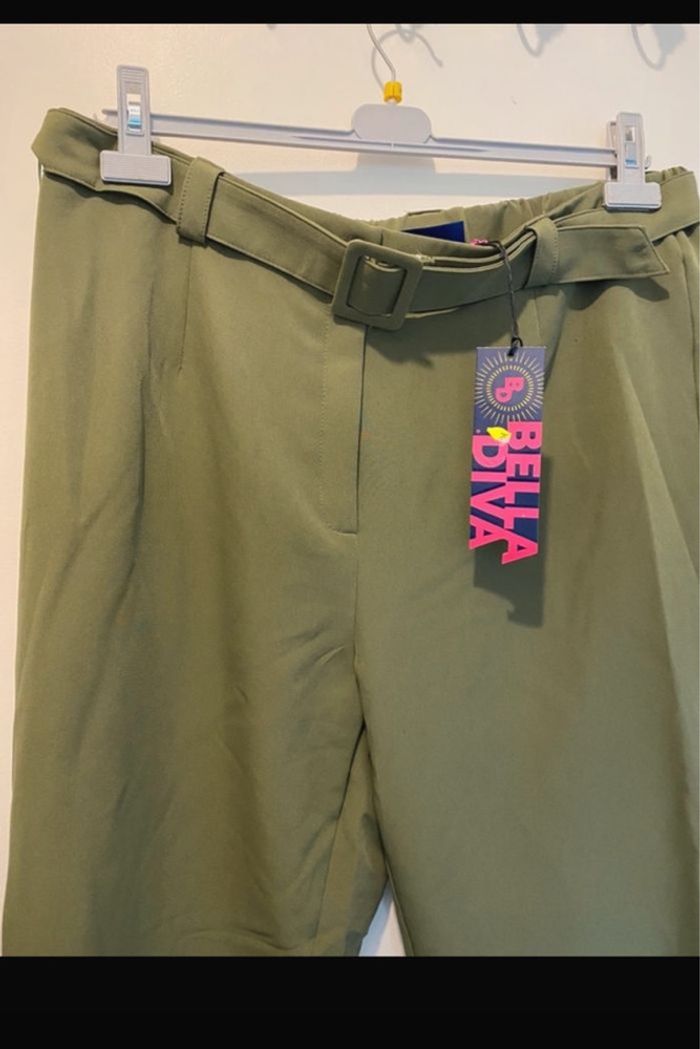 🌸 Pantalon femme avec ceinture incluse 🎨Couleur : Kaki 🔖Neuf 📐Taille : 48 🏷️Marque : Bella Diva
