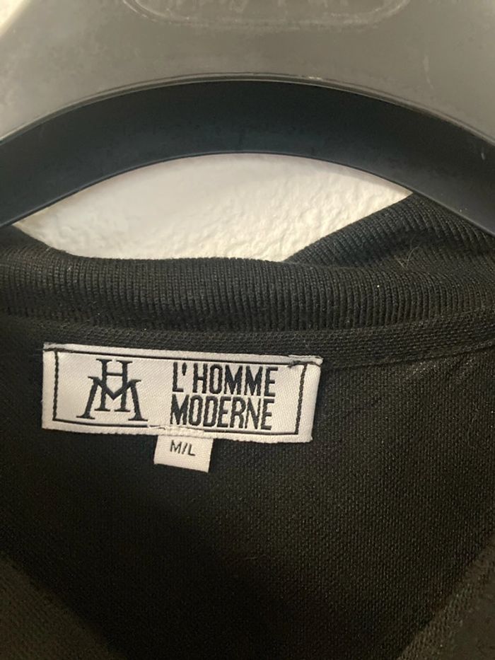 Polo noir manches longues Col en V deux boutons Marque l’homme moderne Neuf jamais porté Taille M/L Hauteur 71 cm #nineh02_HTM #nineh02_HTL #polo #colV #tshirt #mancheslongues #noir #l'hommemoderne #M #L