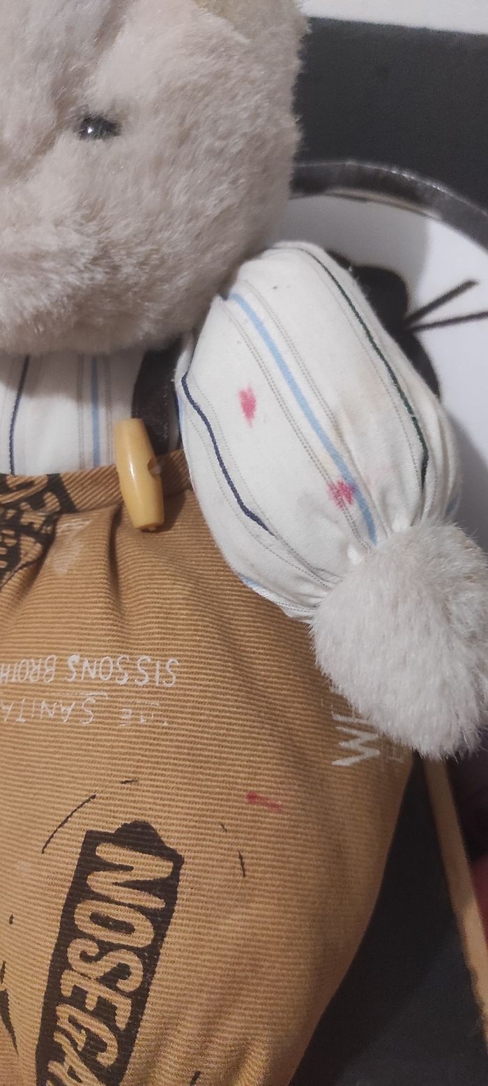 peluche chat assis pantalon marron boanc cremme chemise nosegay ancien chemise - photo numéro 3