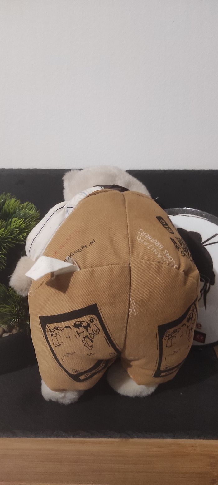 Référence : PE0  remise en main propre possible : Vertou (44) #geektradepeluche Stock : Bon état   Tâches d'encre imprégnées Il a pas été passé en machine je sais pas si sa couleur est crème ou blanc Le logo derrière la peluche fait 20 cm de diamètre Afin de ne pas abîmer les doudous et de laisser le choix dans l'utilisation de la lessive les peluches ne sont pas lavées avant envoi Description complément : Petit nettoyage à prévoir Vous achetez ce que vous voyez les photos font entièrement partie de la description Transport : Les frais de transport comprennent les frais du transporteur ainsi que l'emballage pour protéger au mieux votre achat. Chaque achat est envoyé en format colis avec numéro de suivi Le poids du colis est de 500g finit (je ne peux pas faire moins) il peut donc y avoir plusieurs objets dans le carton si vous le souhaitez (contactez moi afinde grouper les frais de port) Référencement : #geektradedoudou #peluche #plush  #doudou #enfant #bebe #knuffel #comforter #felpa #Plüsch