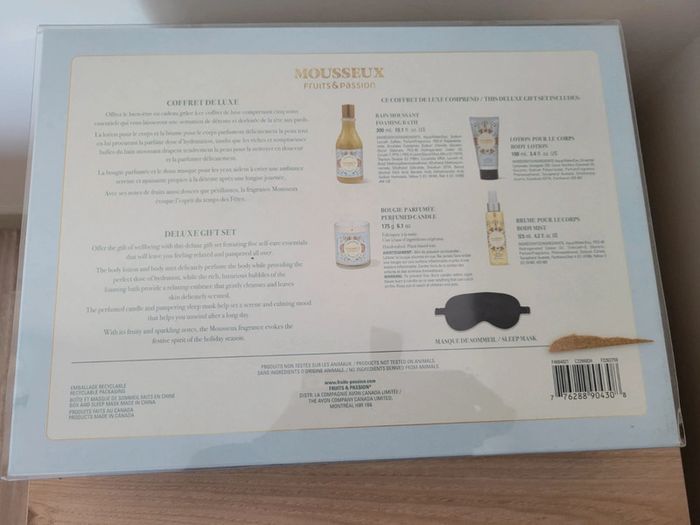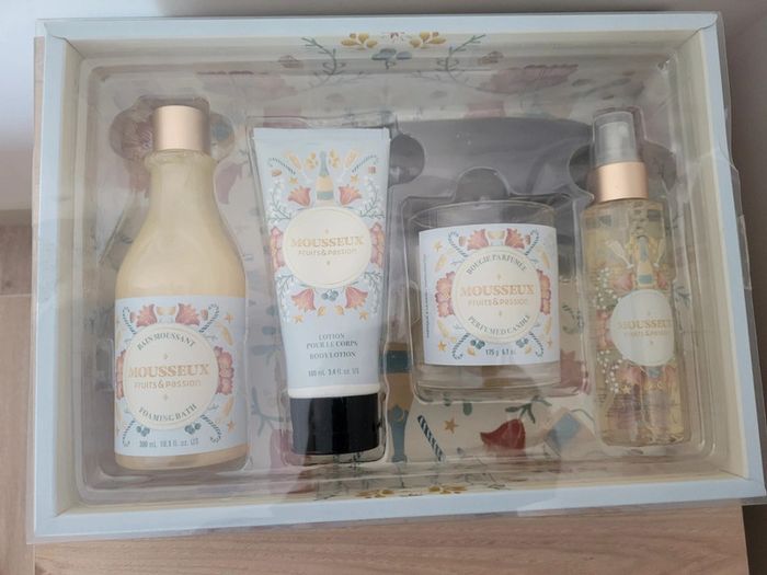 Neuf jamais utilisé. - Lotion pour le corps 100ML - Bain moussant 300ML - Brume parfumé 125ML - Bougie parfumé 175g - Masque nuit