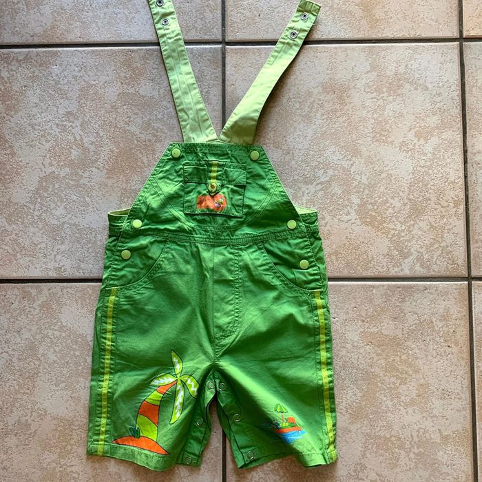 Salopette légère et colorée. Pressions pour change. Taille 18 mois. Bon état ; juste pression poche avant légèrement décolorée. envoi rapide.