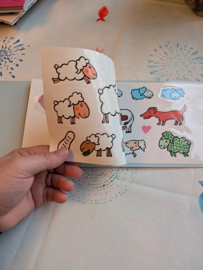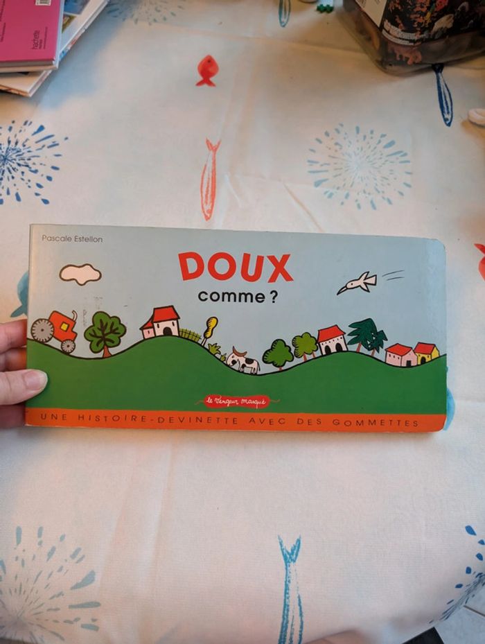 Livre doux comme ? Pascale Estellon Une histoire devinette avec des gommettes Le vengeur masqué Une gommette en moins cf photos