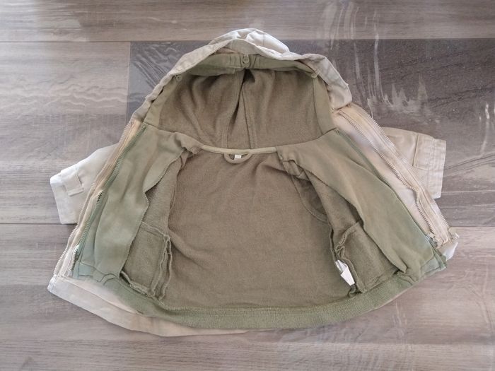 Veste/Manteau léger avec capuche Marque Sergent Major Taille 6 mois • Coloris beige, kaki • Fermeture par fermeture éclair • Manteau avec gilet à l'intérieur • Gilet retirable • 2 poches sur le manteau et le gilet • Scratch sur le bas des manches du manteau • Manteau contenant du lin En très bon état #evelyne_garcons_6mois #evelyne_garcons