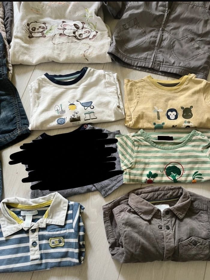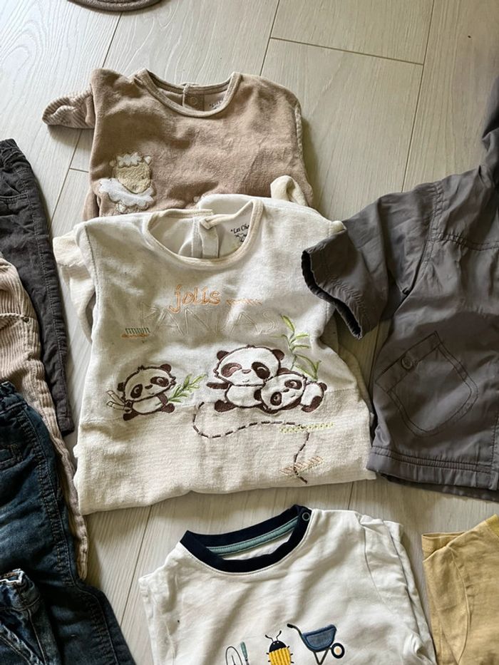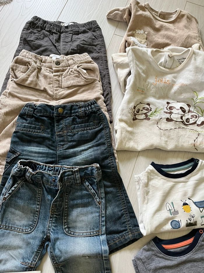 Lot vêtements 12 mois garçon 4 pantalons 2 pyjamas 5 hauts 1 manteau Marques: obaibi, Kiabi, les chatounets,dpam #mvinceneux12mois