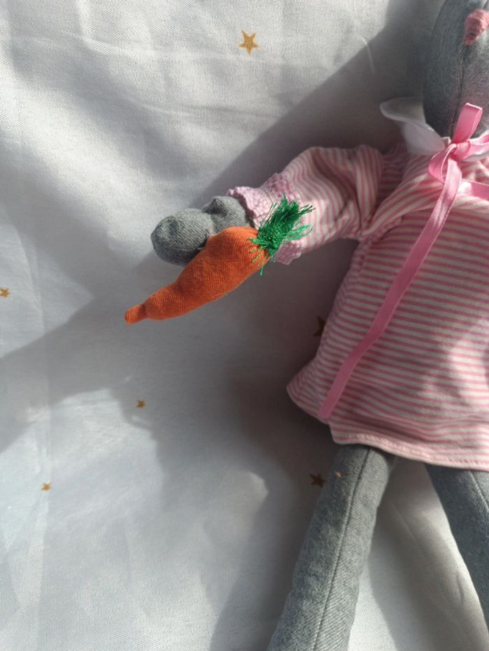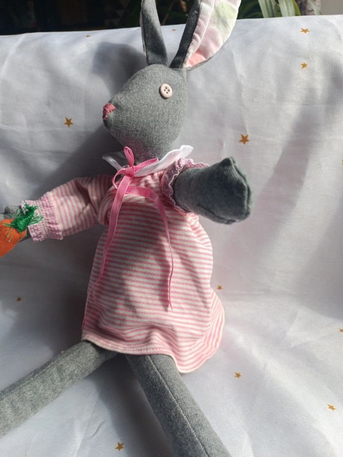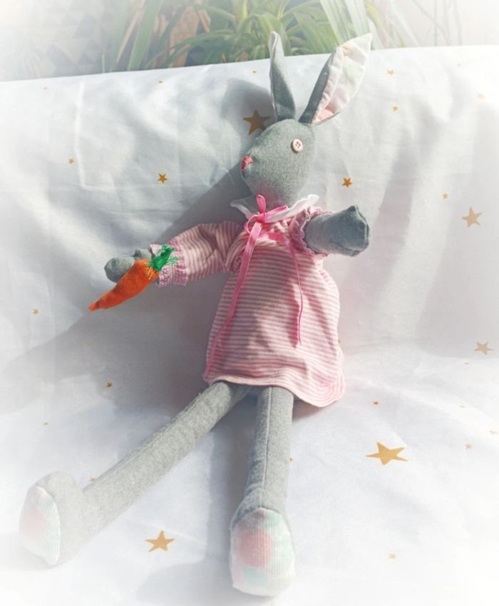 Peluche doudou plush teddy tissu grand lapin bunnies Bunny gris grey carotte poupée doll chiffon