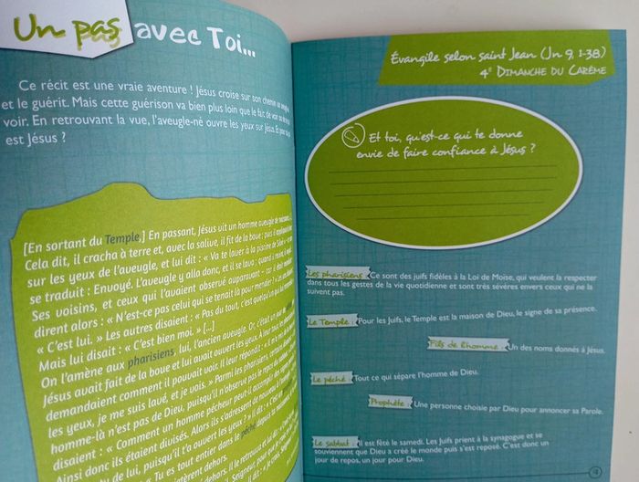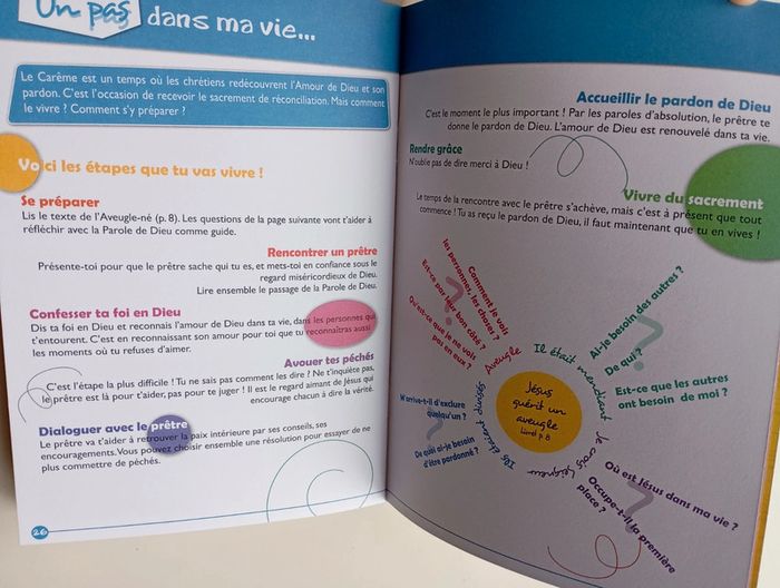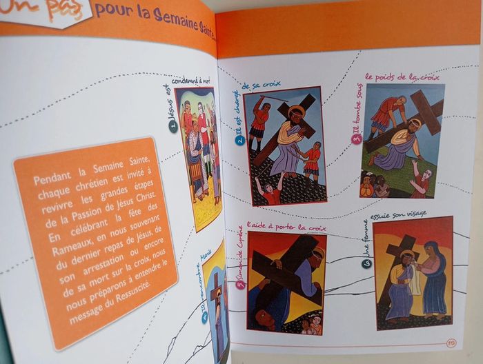 Ce livre permet de vivre le Carême de l'année A, du Mercredi des Cendres jusqu'à la Veillée pascale. Les enfants sont invités à découvrir les évangiles du dimanche et à suivre un chemin de conversion et de réconciliation pour porter du fruit et vivre la Pâque avec Jésus. Il s'agit d'une proposition facile à vivre en école ou en paroisse, en rencontres régulières ou en temps forts. Éditeur ‏ : ‎ Crer Bayard 36 pages Âge de lecture ‏ : ‎ Dès 7 ans Dimensions ‏ : ‎ 14.8 x 0.5 x 21 cm Livre en excellent état Je vends d'autres livres sur Pâques #phil_peg_pâques ou la religion #phil_peg_religion #pâques #religion #jésus #résurrection #carême