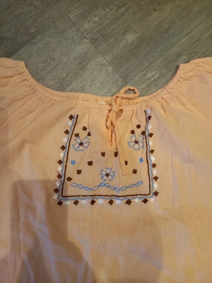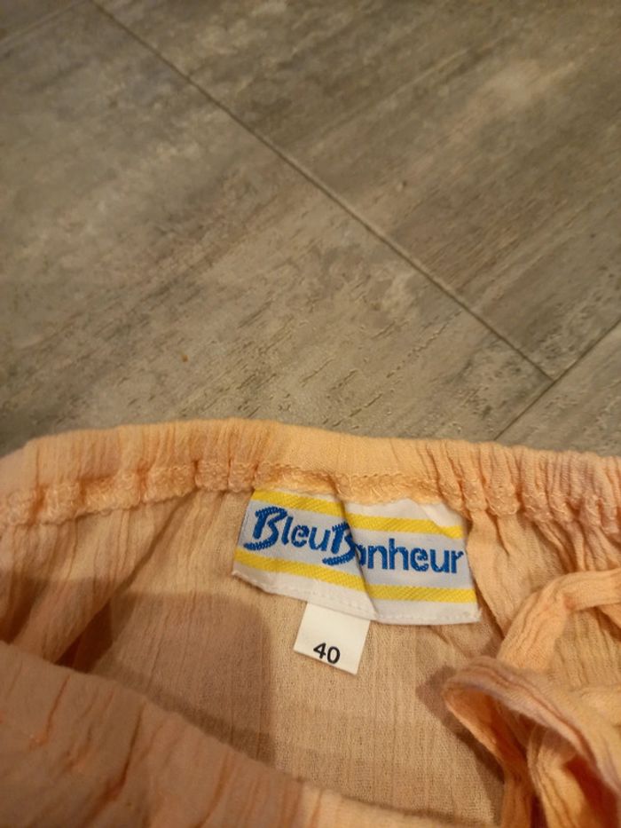 Haut femme Manches 3/4 large Saumon Bleu bonheur Taille 40 100% coton Très bon état