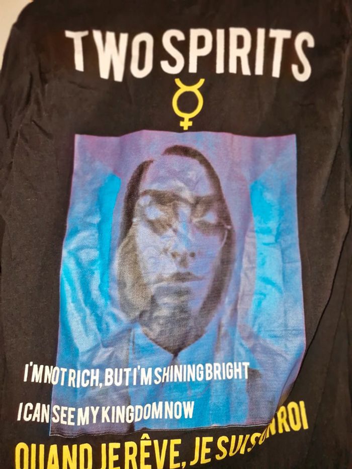 Tee shirt Billal Hassani × DCMJ taille xs Ml Devant il est écrit Two Spirit Et au dos d autre écriture avec billal hassani Bon etat