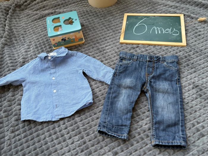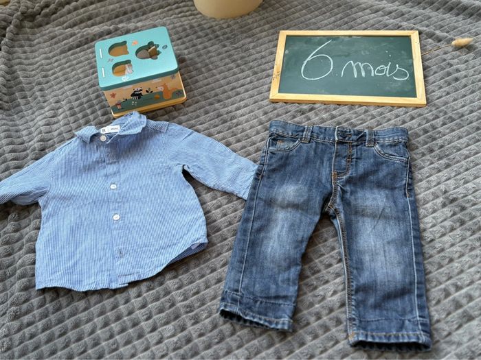 Magnifique ensemble obaibi, bébé garçon 6 mois (jean et chemise) - photo numéro 1