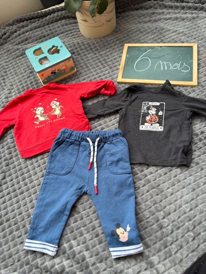 Tenue complète Disney comme neuve Pull porté seulement quelques fois, tee shirt neuf et pantalon neuf ( juste lavé ) #disney #disneybaby #6mois #disneybaby6mois #pantalon6mois #pull6mois #teeshirt6mois #6moiscamillaluna #6moisdisney #disneybaby6mois