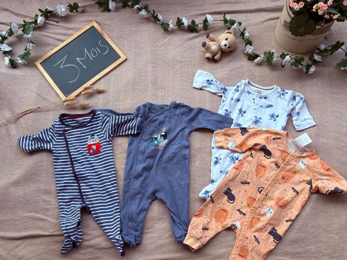 Lot de 4 pyjamas taille 3 mois (obaibi, c et a , gemo) - photo numéro 1