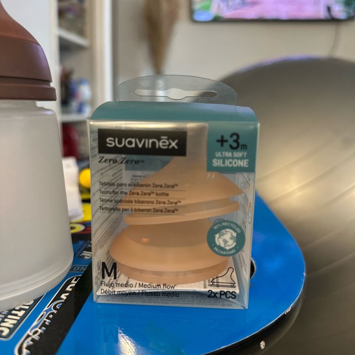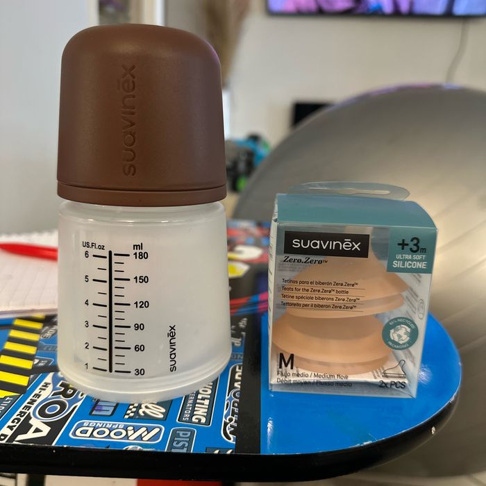 Biberon avec tétine taille S et tétine taille M x2 Utilisé 1 fois mais ne conviens pas à mon bébé état neuf