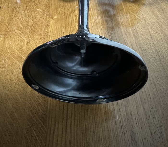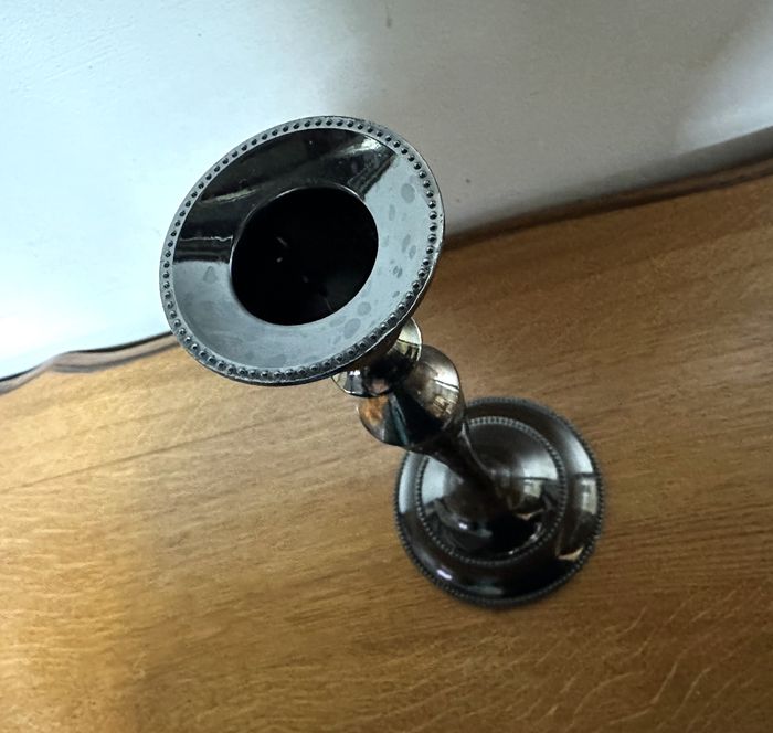 Noir verni. Dimensions : hauteur 25 cm, diamètre du pied 10.5 cm.
