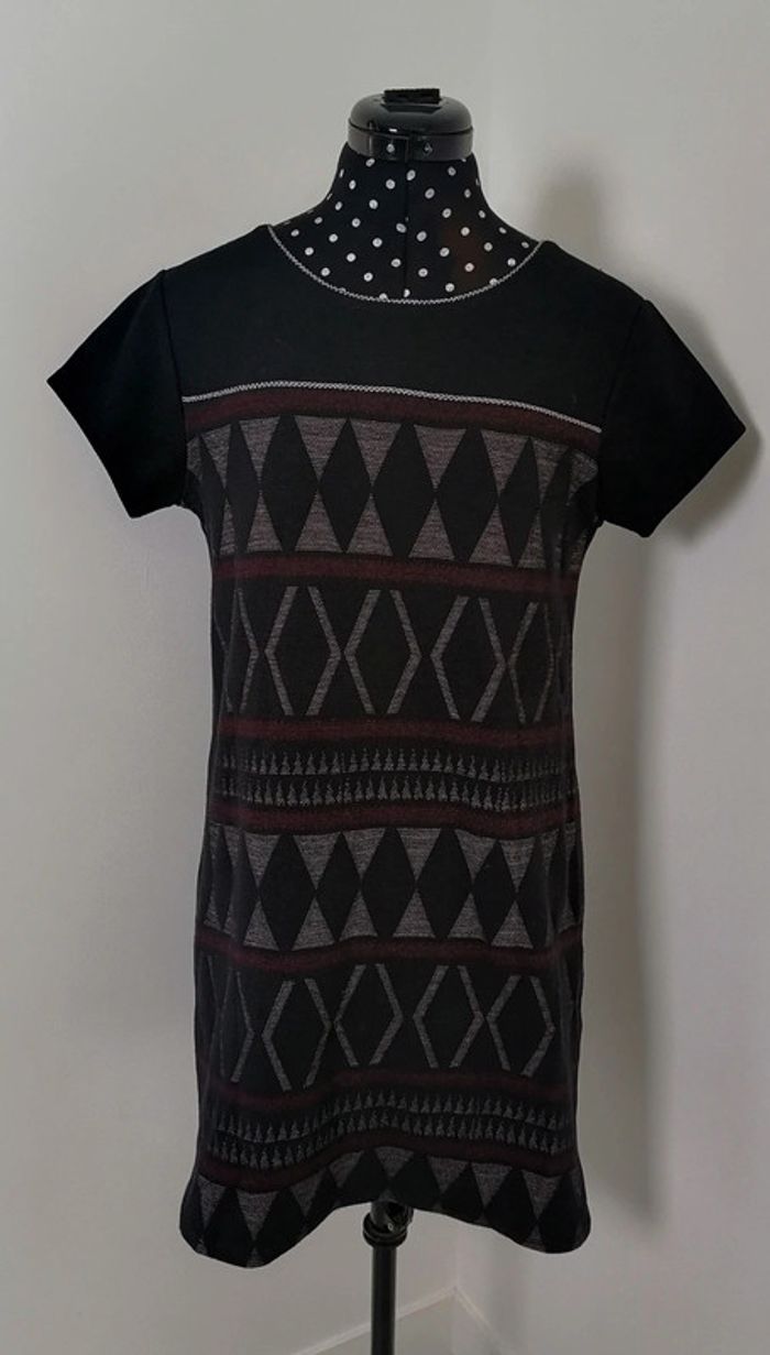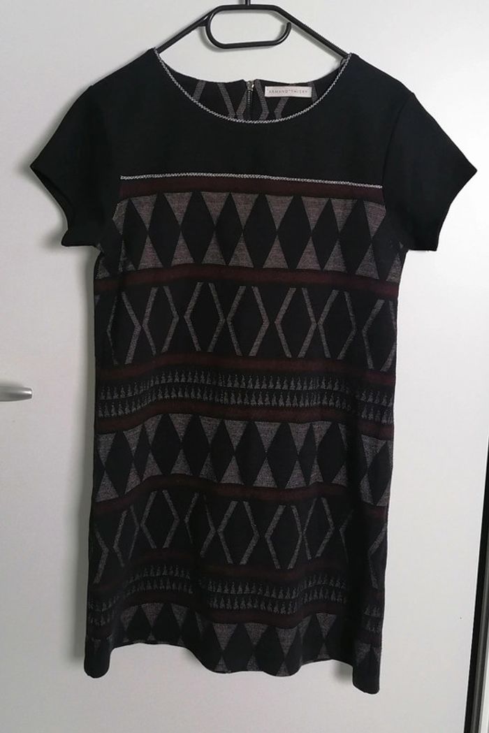 Robe courte géométrique noir rouge crème Taille M/L Armand Thiery - photo numéro 5