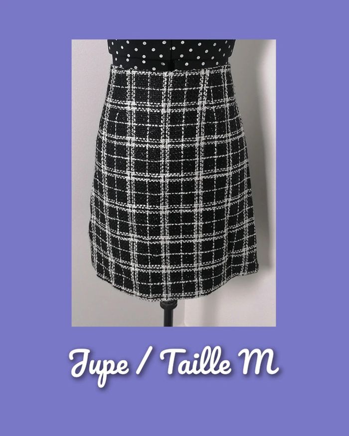 Mini-jupe à carreaux tweed noir blanc Taille M