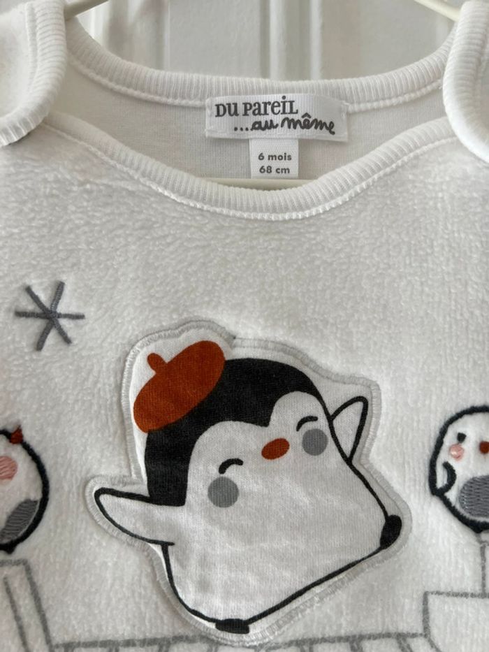 Combinaison 6 mois DPAM Blanche motifs pingouins Comme neuve #lgti6mois
