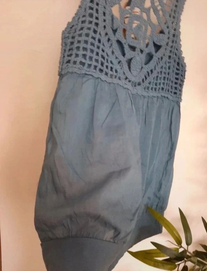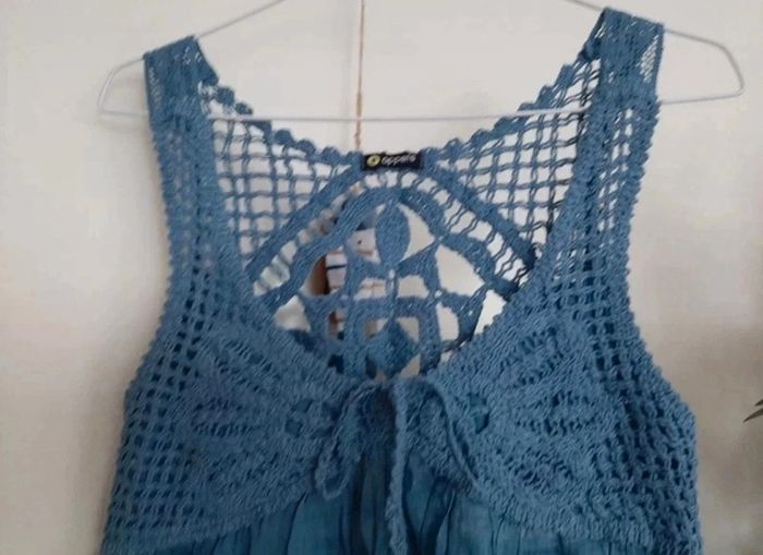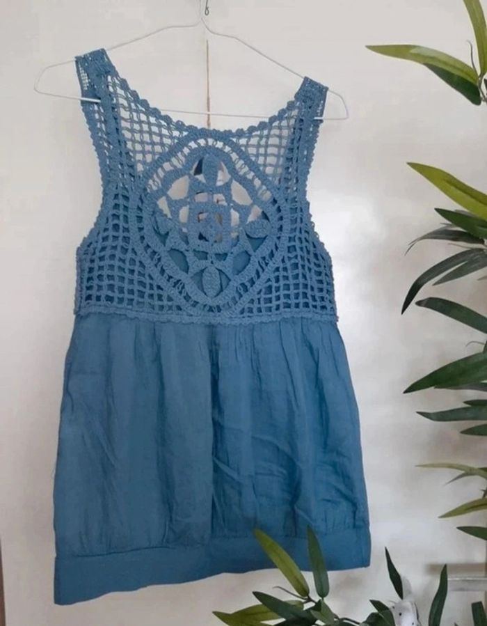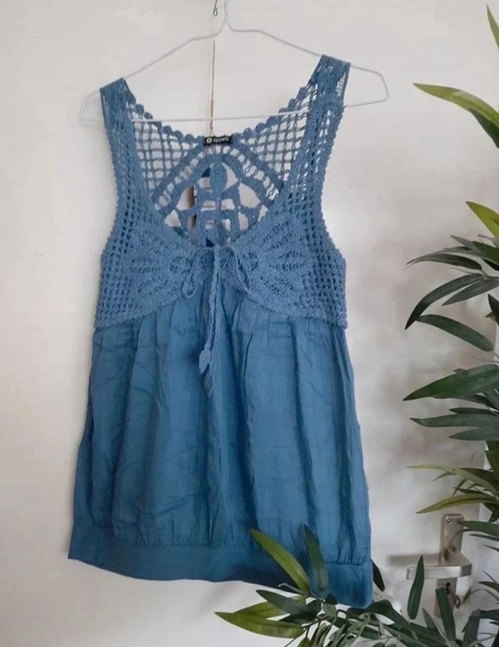 Top bleu clair avec parties brodées. Etat neuf. Taille S. Magnifique. Je le vends au prix de 10 euros. #TailleS36marine