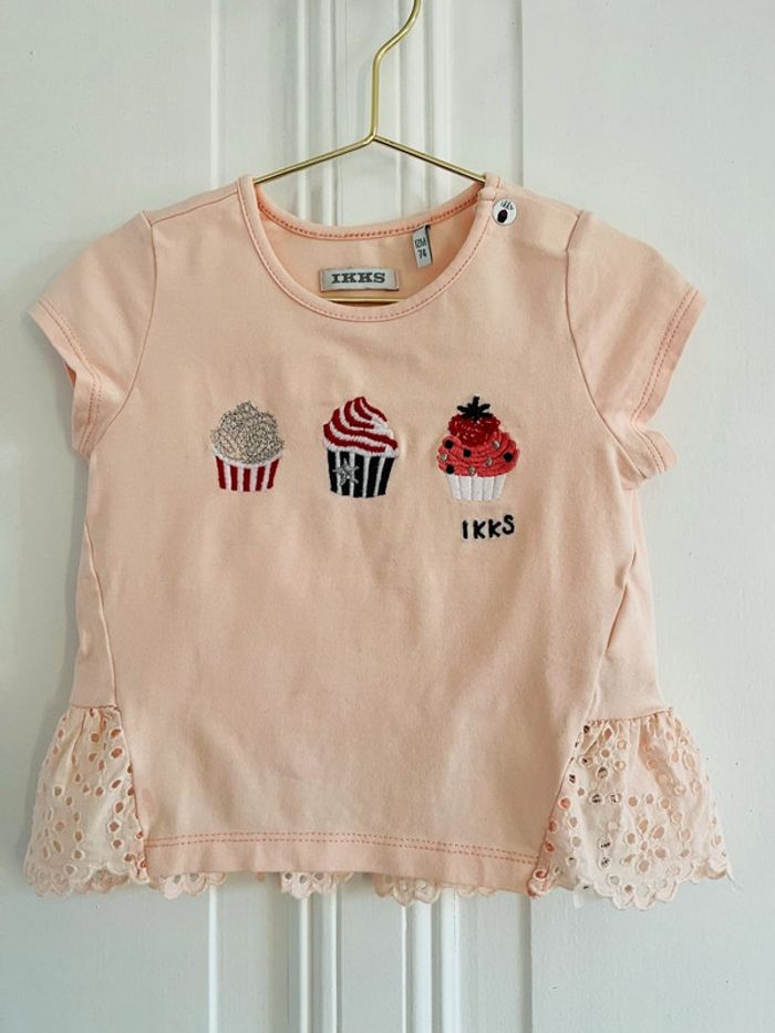 T-shirt IKKS abricot 12 mois Motifs cupcakes Parfait état #lgti12mois T#lgtiikks