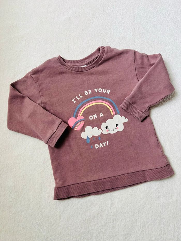 Sweat H&M violet 12-18 mois Motif nuage-arc en ciel Tbe général, flocage très légèrement craquelé #lgti18mois #lgtihetm