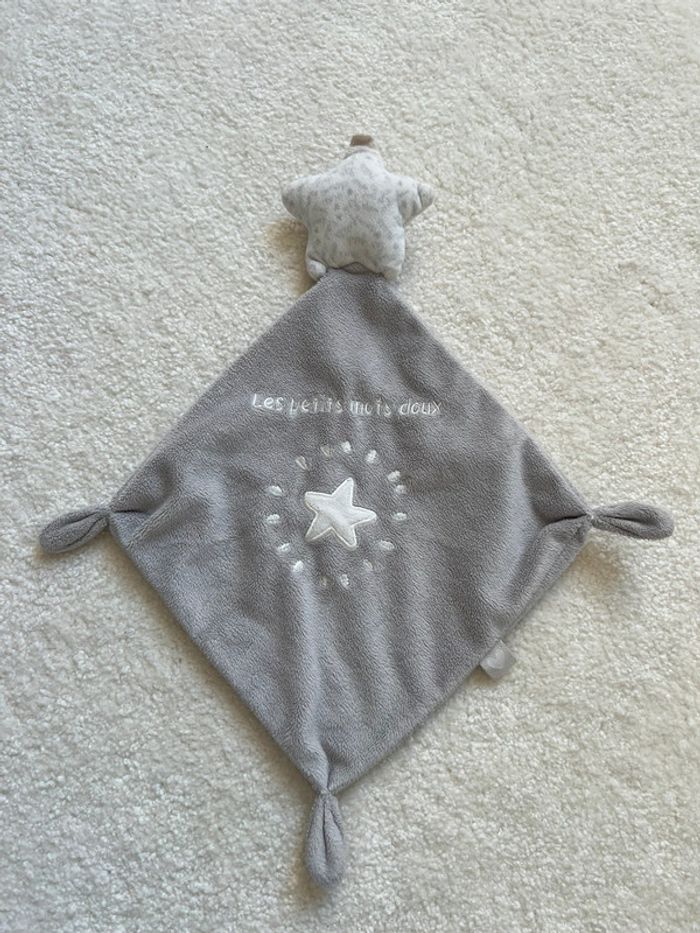 Doudou plat gris mots d’enfants Inscription « les petits mots doux », étoile Tbe #lgtipeluches #lgtidoudou #lgtidoudouplat #lgtimotsdenfants