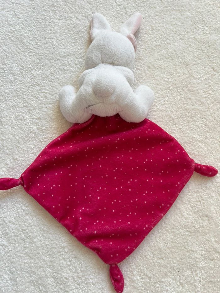 Doudou plat mouchoir lapin simba toys Lapin blanc, mouchoir rose « Happy night » Tbe #lgtipeluches #lgtidoudou #lgtidoudouplat #lgtidoudoumouchoir #lgtisimbatoys #lgtilapin