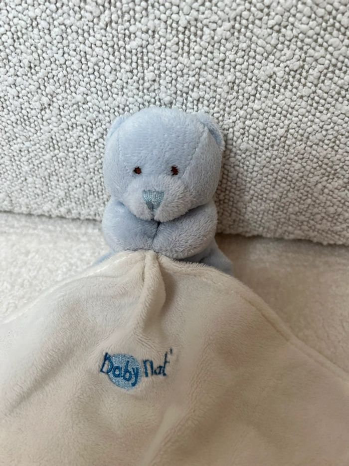 Doudou mouchoir babynat blanc et bleu Ours bleu, mouchoir blanc Tbe #lgtipeluches #lgtidoudou #lgtidoudouplat #lgtidoudoumouchoir #lgtibabynat #lgtiours