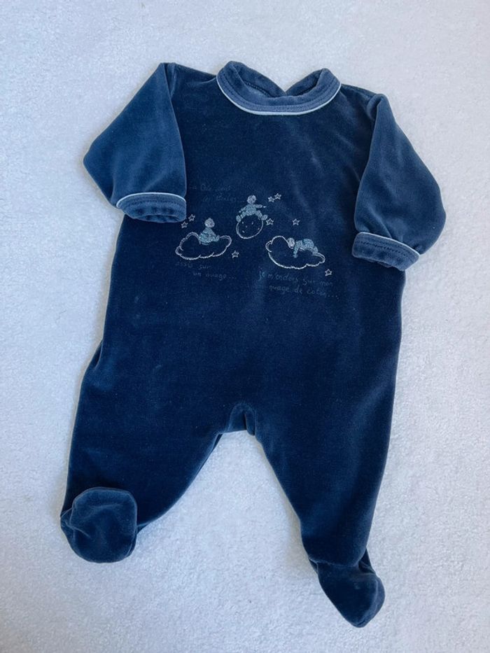 Pyjama marine petit bateau 1 mois Chaud, en velours ras Bon état #lgti1mois