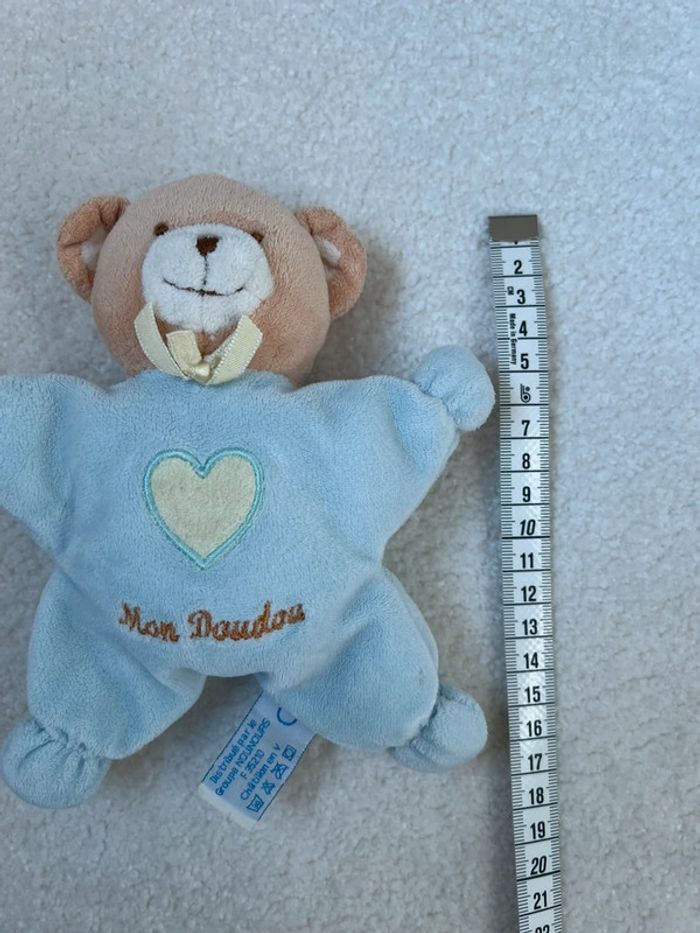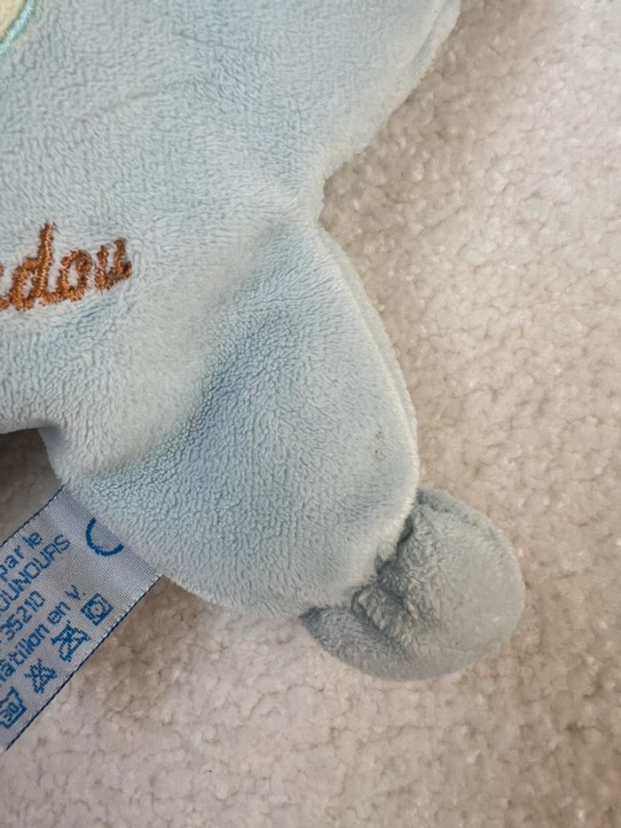 Doudou ours bleu Nounours Inscription « mon doudou » Hochet Bon état #lgtipeluches #lgtidoudou #lgtinounours #lgtiours
