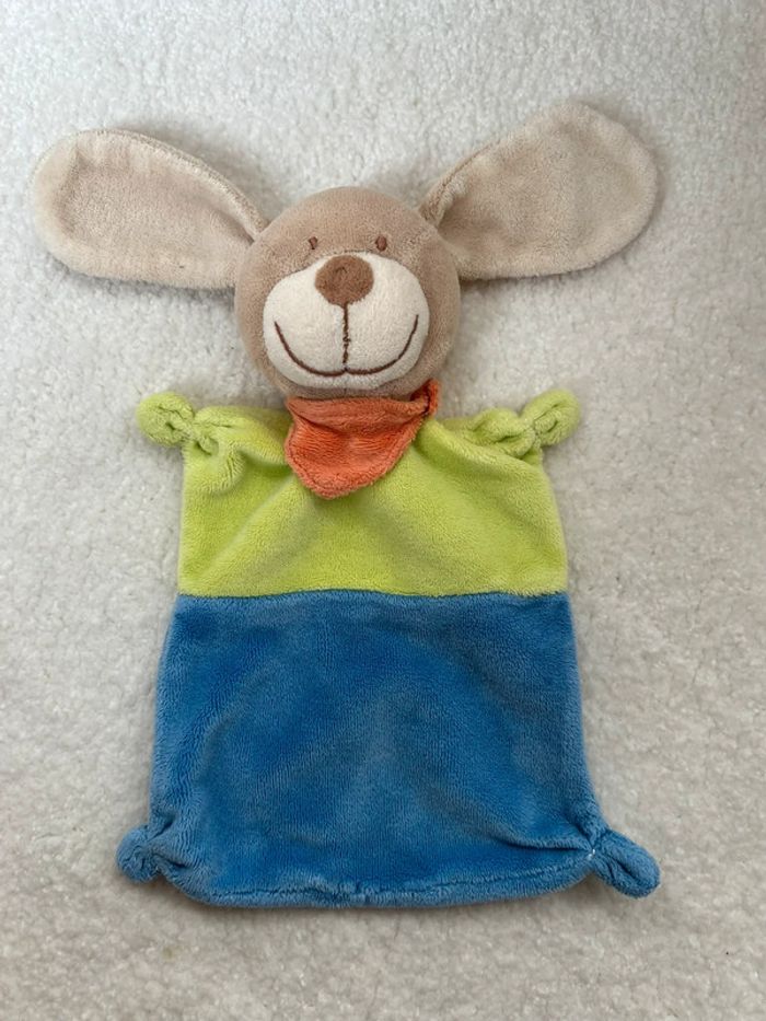 Doudou plat Nicotoy chien vert et bleu - photo numéro 1