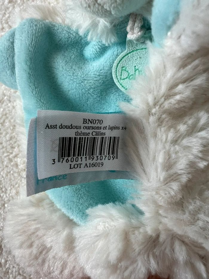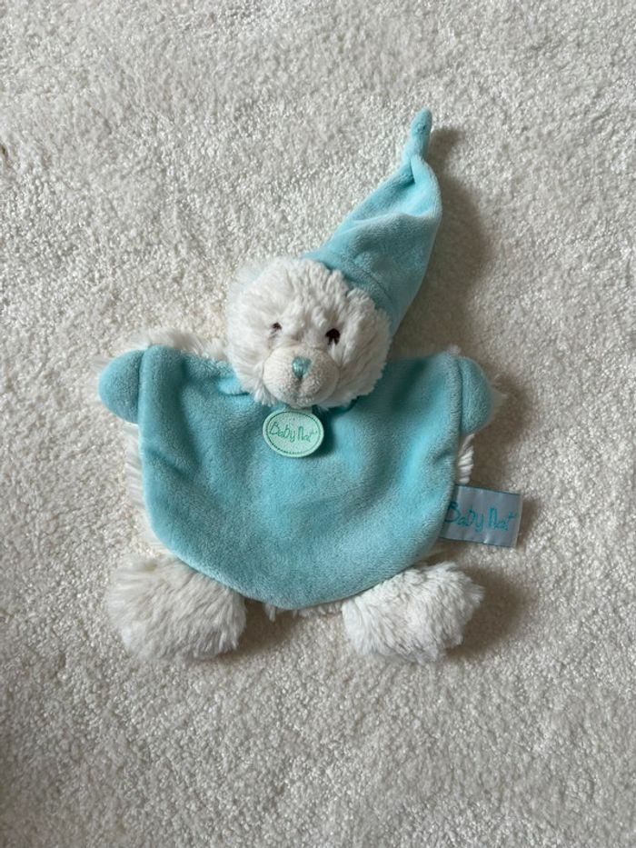 Doudou ours Baby Nat câlins Bleu turquoise et blanc #lgtipeluches #lgtidoudou #lgtidoudouplat #lgtiours #lgtibabynat