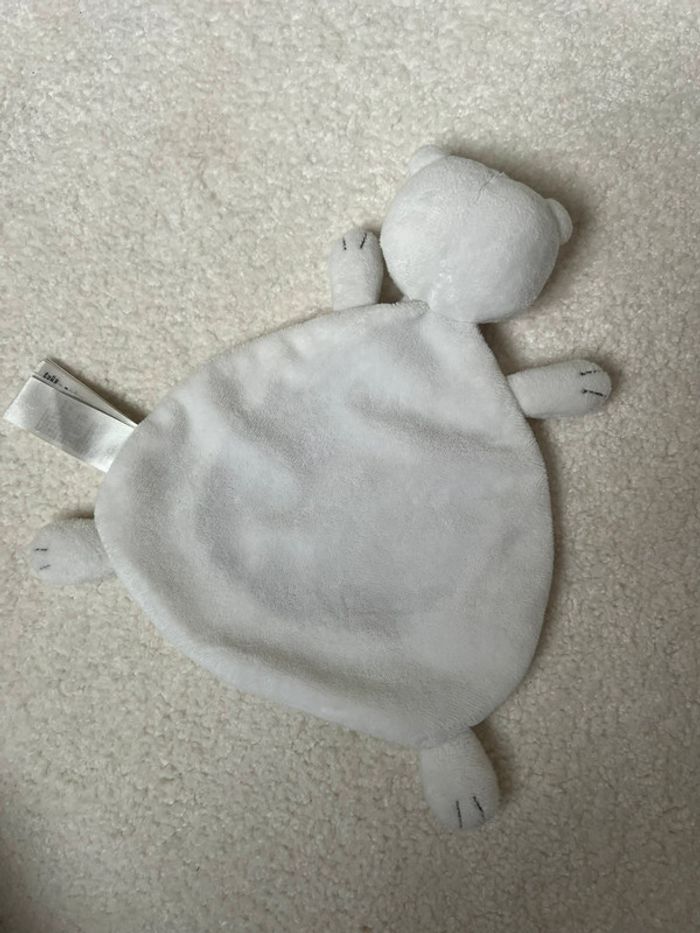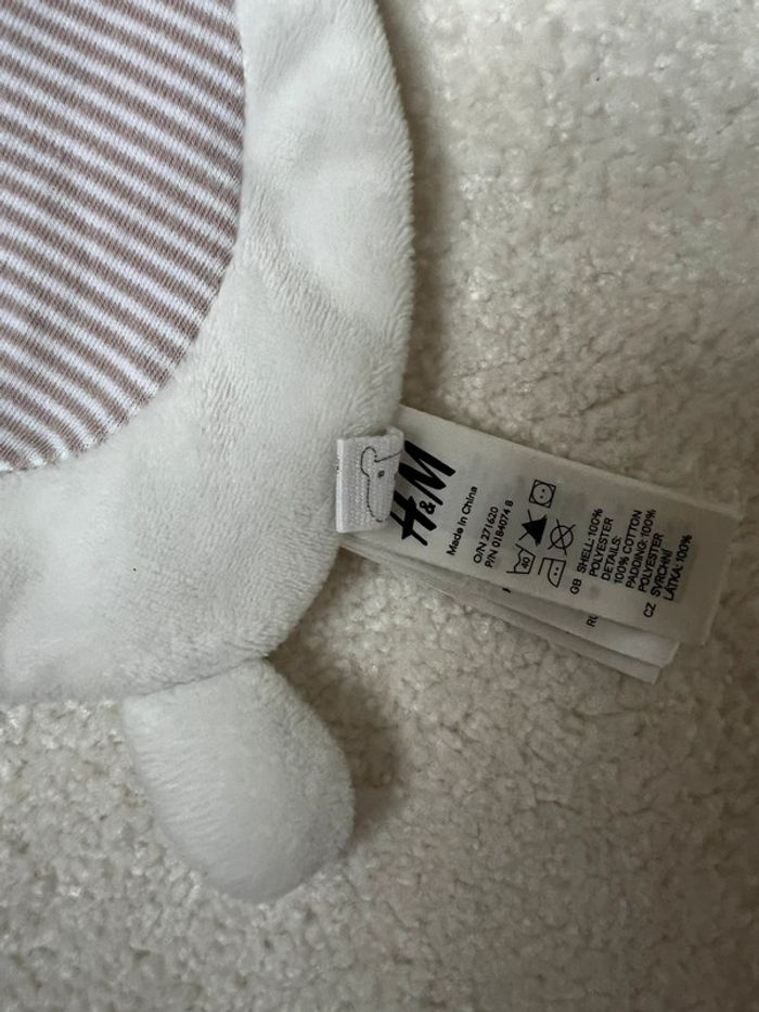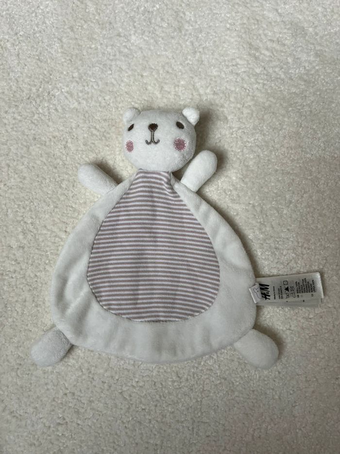 Doudou plat H&M ours blanc Ventre rayé beige Tbe #lgtipeluches #lgtidoudou #lgtidoudouplat #lgtiours #lgtih&m