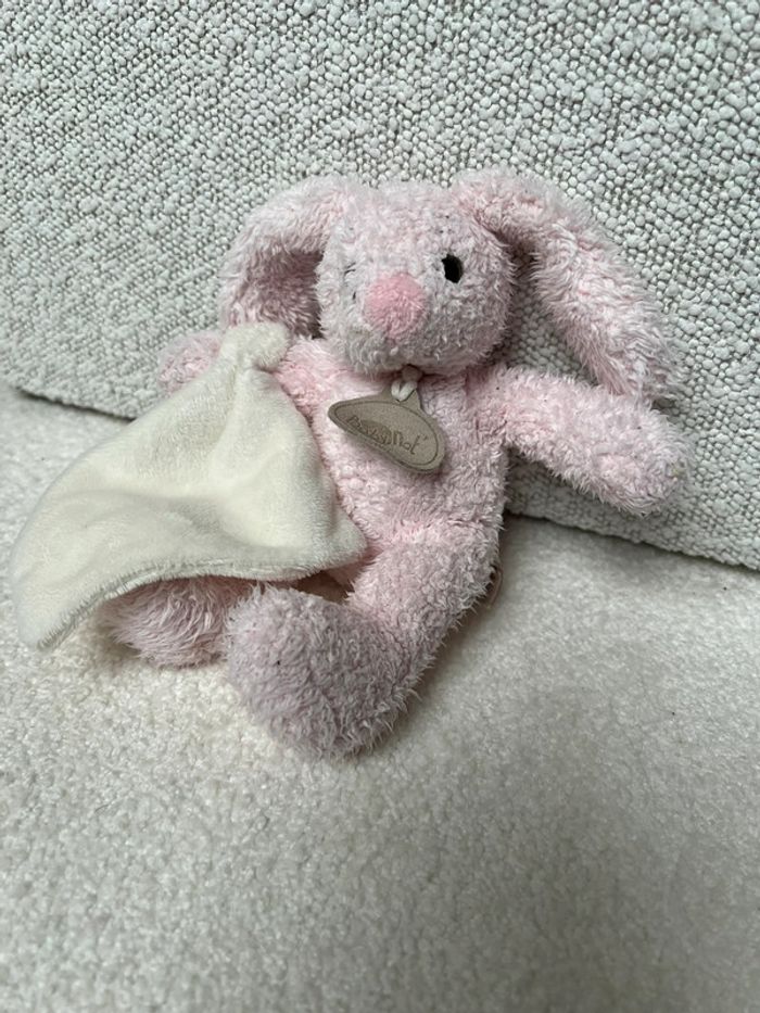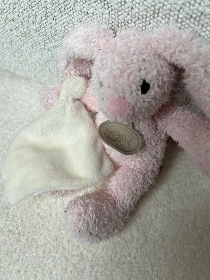 Doudou mouchoir babynat lapin rose Lapin rose tout doux avec mouchoir blanc Bon état #lgtipeluches #lgtidoudou #lgtidoudoumouchoir #lgtibabynat #lgtilapin
