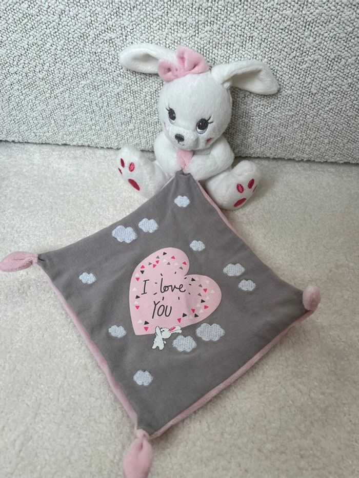Doudou mouchoir lapin blanc gris et rose Simba Toys Tbe #lgtipeluches #lgtidoudou #lgtidoudoumouchoir #lgtidoudouplat #lgtilapin #lgtisimbatoys