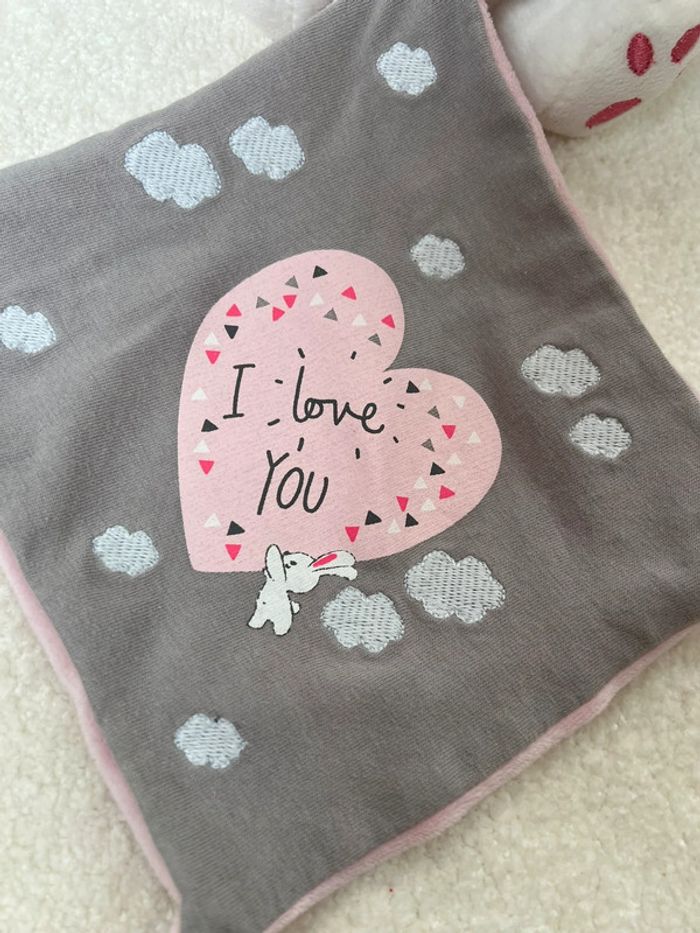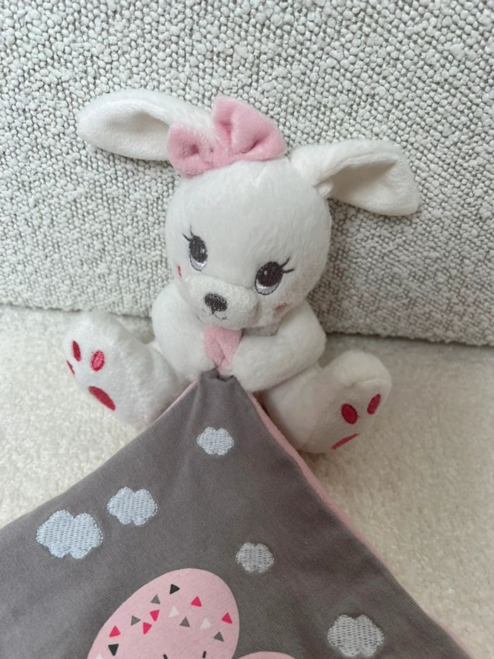 Doudou mouchoir lapin blanc gris et rose - photo numéro 4