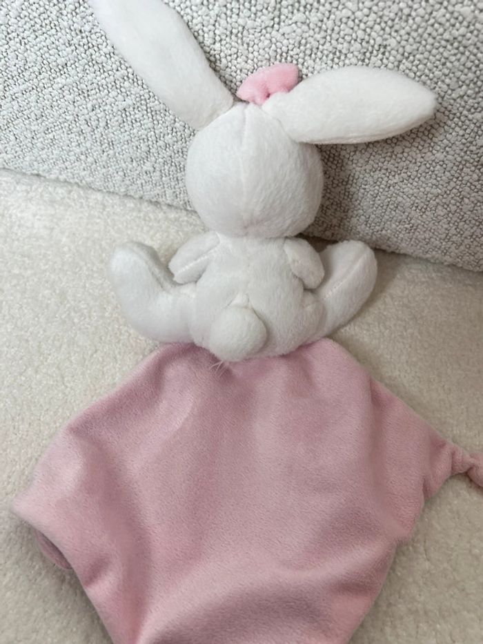 Doudou mouchoir lapin blanc gris et rose - photo numéro 1