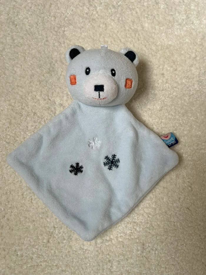 Doudou plat sucre d’orge Ours bleu clair avec flocons Tbe #lgtipeluches #lgtidoudou #lgtidoudouplat #lgtiours
