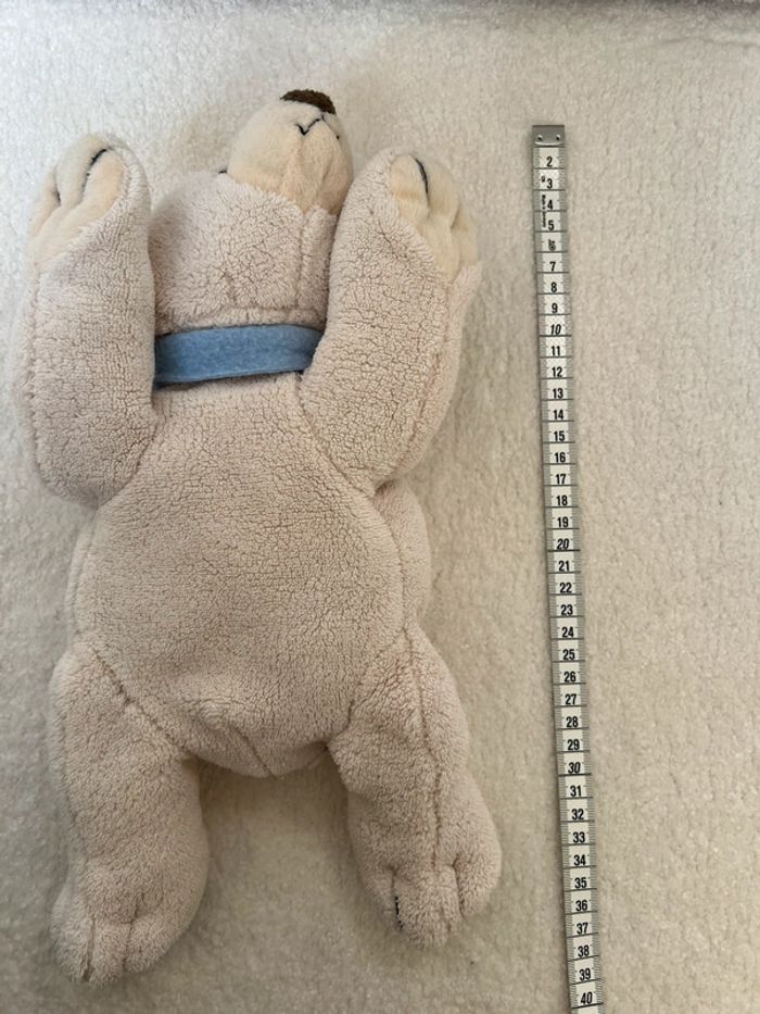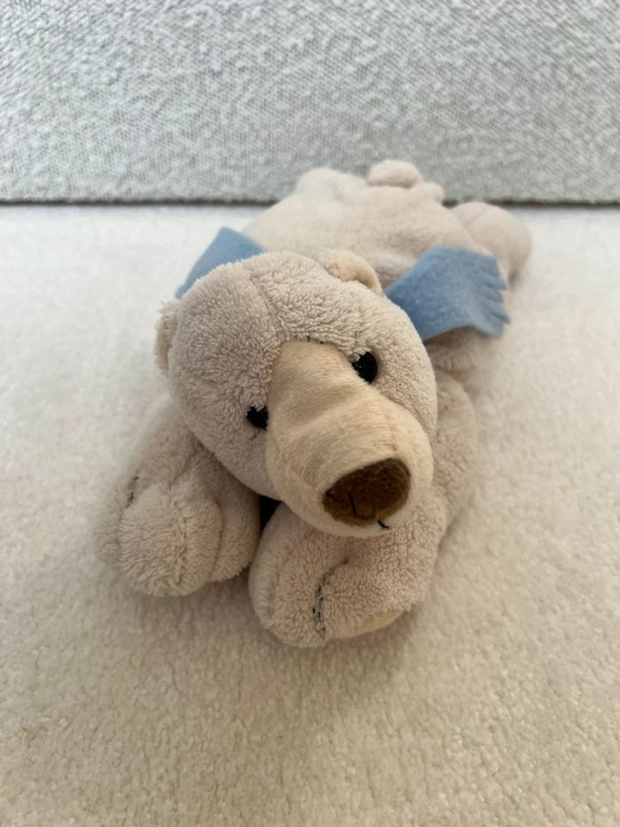 Peluche ours écharpe bleue Ours blanc beige couché Bon état #lgtipeluches #lgtiours