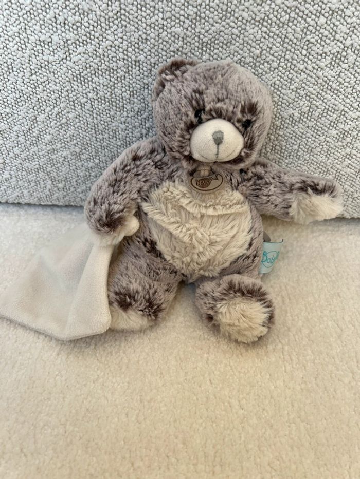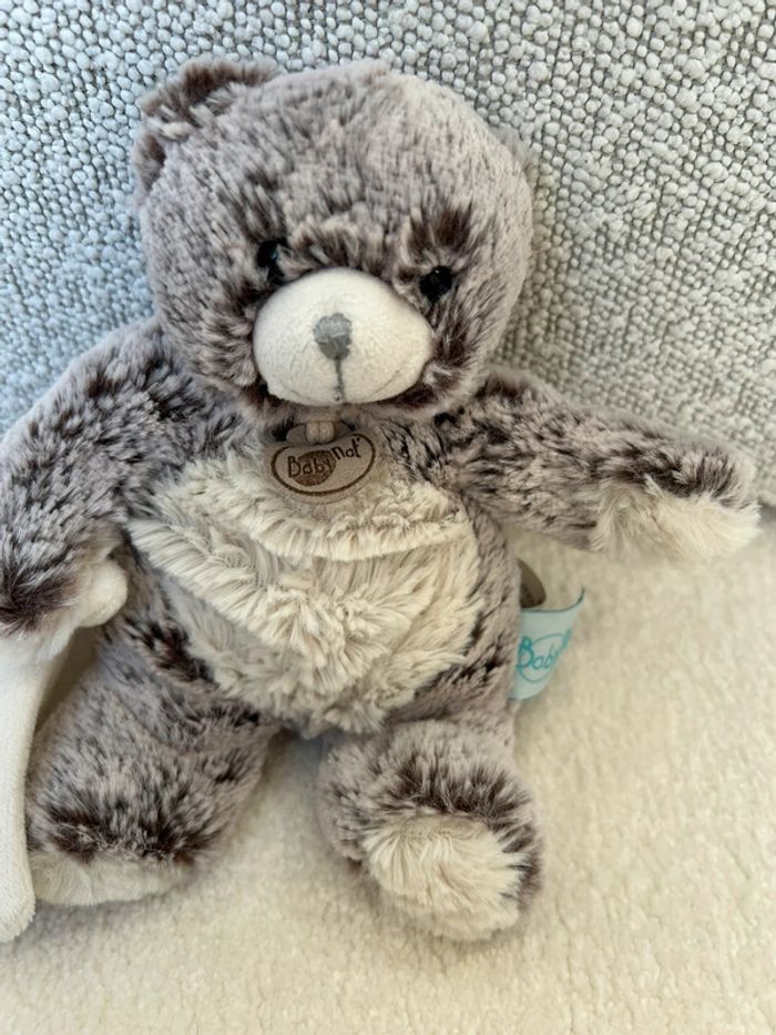 Ours en peluche mouchoir BabyNat Marron gris à ventre blanc Tbe #lgtipeluches #lgtiours #lgtidoudou #lgtidoudoumouchoir