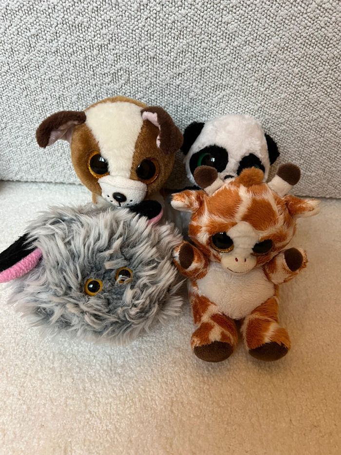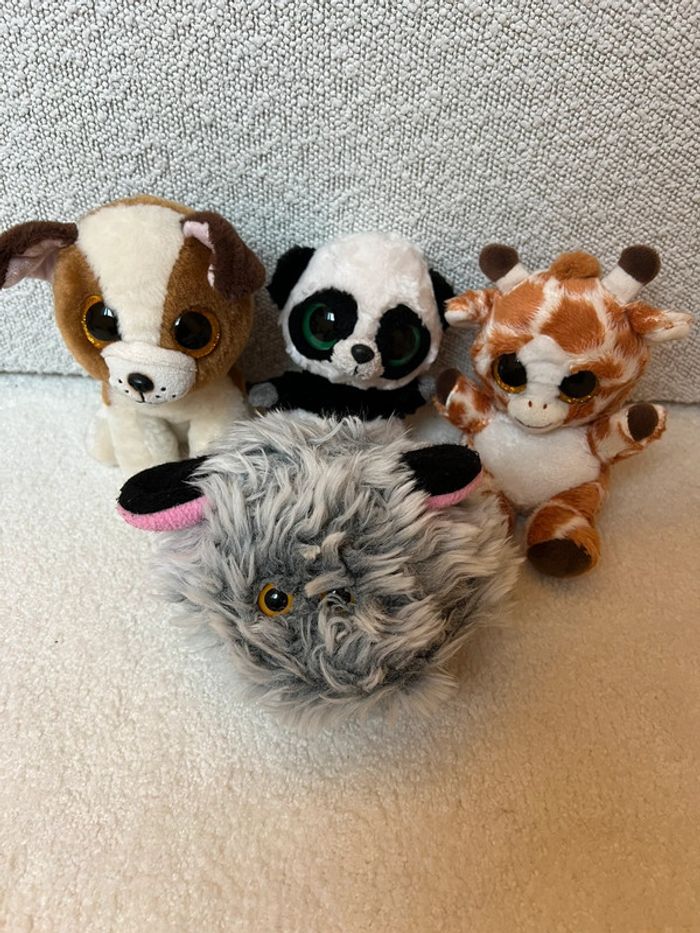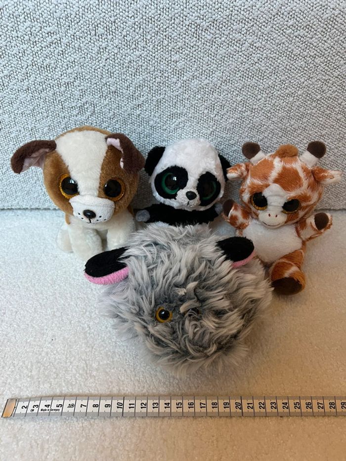 Lot de 4 peluches animaux à gros yeux Style Ty Chien panda girafe et boule de poils Tbe général #lgtipeluches