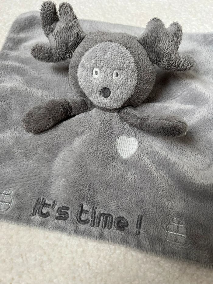Doudou plat gris renne obaibi Doudou de Noël ! Inscription « it’s time » Tbe #lgtipeluches #lgtidoudou #lgtidoudouplat