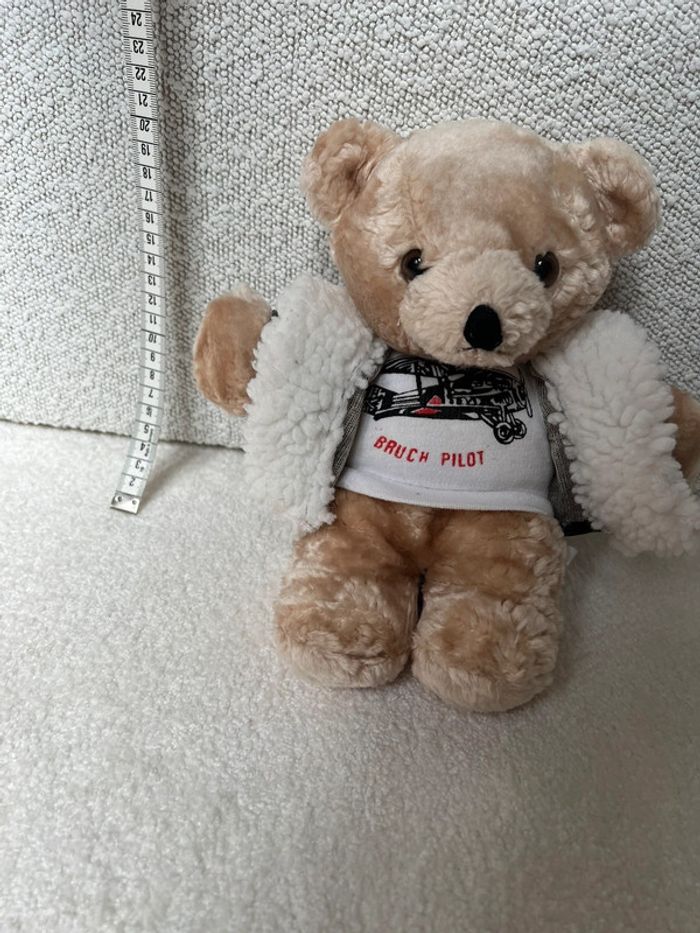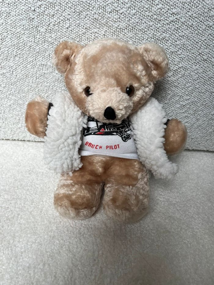 Ours aviateur Bruch Pilot Vintage Blouson en similicuir TBE #lgtipeluches #lgtiours #lgtivintage