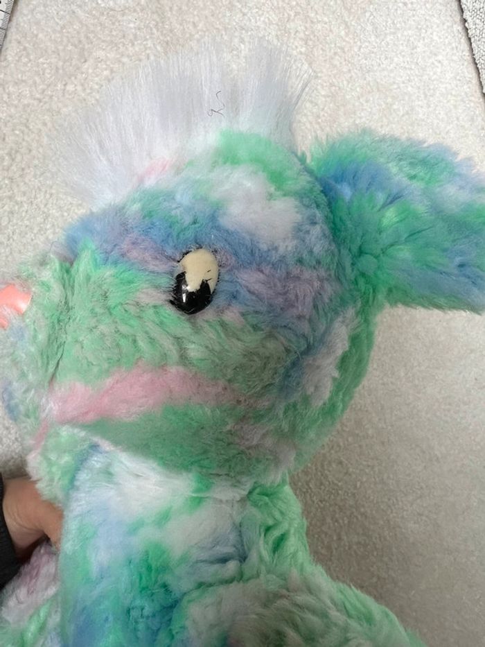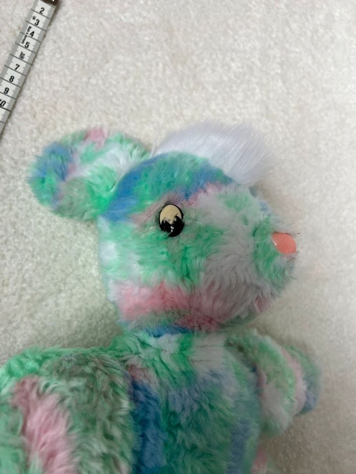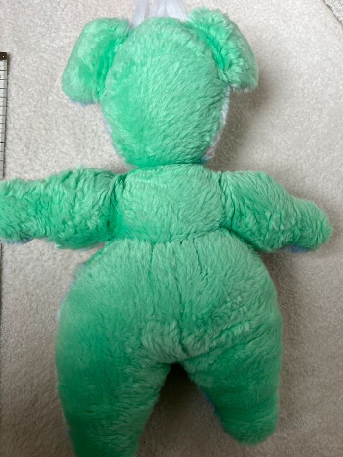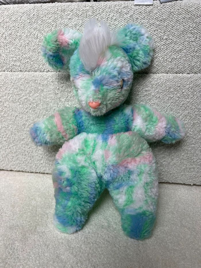 Ours en peluche vintage Couleurs pastel vert bleu rose Yeux abîmés #lgtipeluches #lgtiours