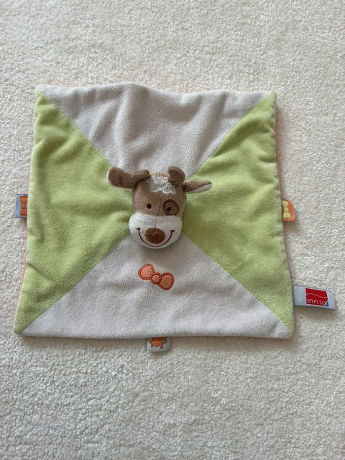 Doudou plat vache vert et blanc Influx Bon état général #lgtipeluches #lgtidoudou #lgtidoudouplat #lgtivache