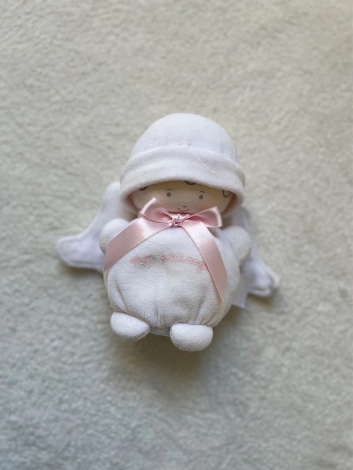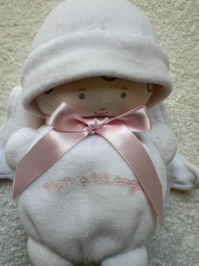 Doudou hochet Corolle 2002 Inscription « mon p’tit ange » avec des ailes #lgtipeluches #lgtidoudou #lgticorolle