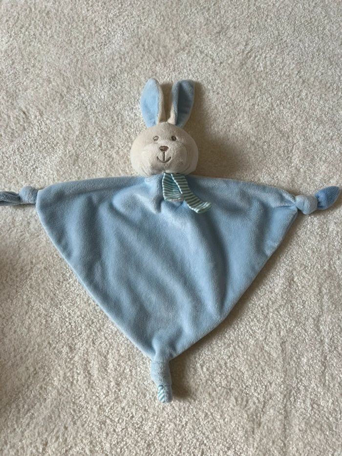 Doudou plat triangle bleu Lapin Marque FashyBaby #lgtipeluches #lgtidoudou #lgtidoudouplat #lgtilapin