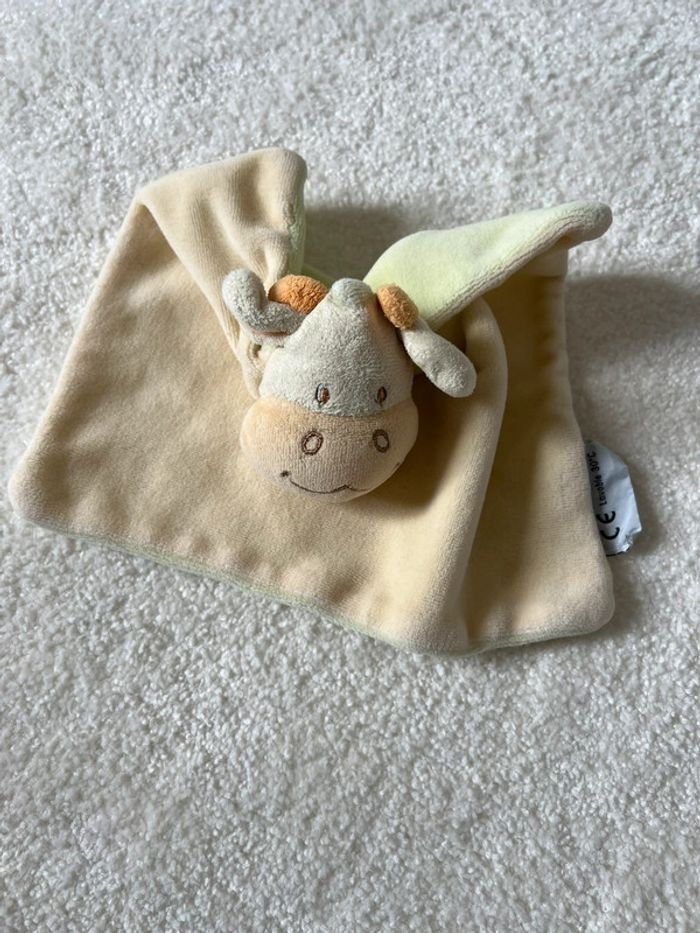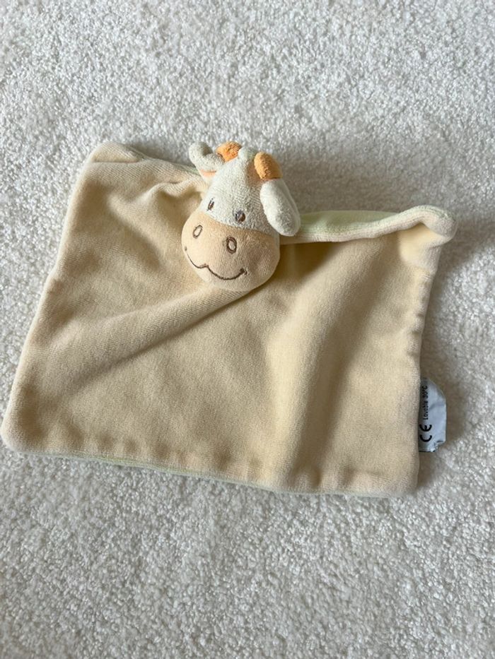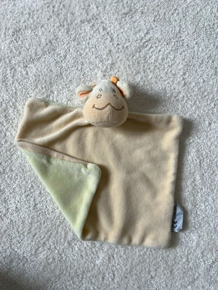 Doudou plat vache jaune et vert Amtoys