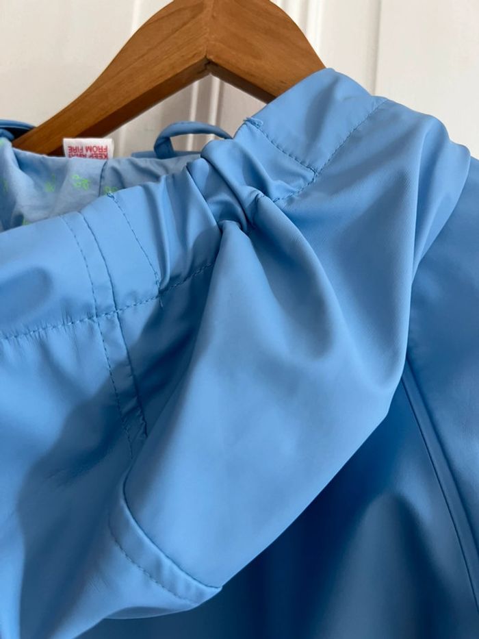 Parka imperméable bleu 2/3 ans Zara Effet gomme Bleu et cerises vertes ❗️Attentions défauts : - petite trace en bas dans le pli donc ne se voit pas porté - défaut d’origine dans la couture de la capuche. Un point a été mal placé donc la capuche tient difficilement sur la tête car sa forme est un peu plus courte du fait de ce point. Non visible de l’extérieur mais à prendre en compte pour le confort de l’enfant #lgti3ans
