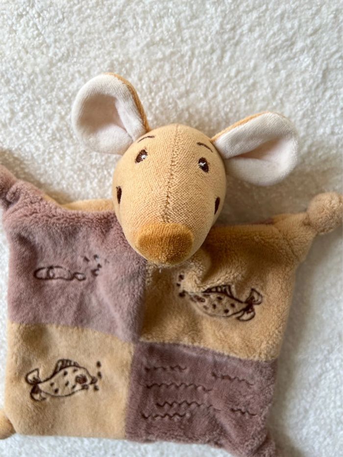 Doudou plat souris marron/jaune Crédit agricole #lgtipeluches #lgtidoudou #lgtidoudouplat #lgtisouris
