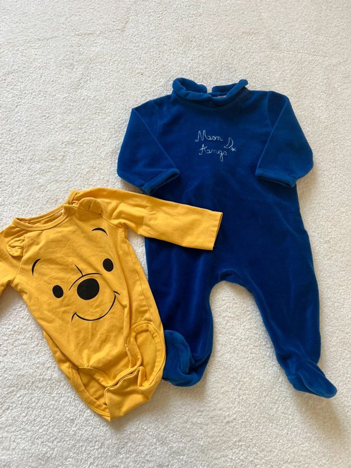 Lot body et pyjama 3 mois Pyjama bleu 3 mois DPAM Body Winnie jaune H&M 3 mois #lgti3mois